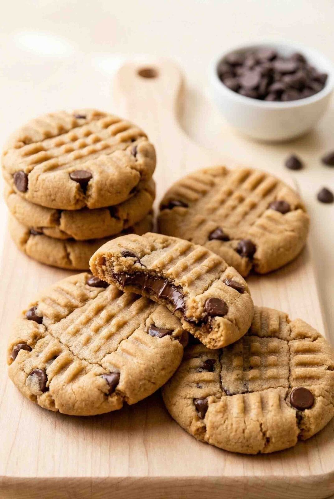 Soft peanut butter chocolate chip cookies with chewy centers and crisp edges. Made with creamy peanut butter and loaded with chocolate chips. Ready in 21 minutes with no chilling required.
